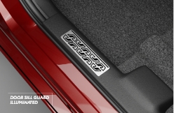 The wide and sharp horizontal chrome bar, a Toyota signature, accentuates the upper grill. And a large trapezoidal lower grille with carbon fiber texture exudes a sporty look. All so you arrive in style, wherever you go.